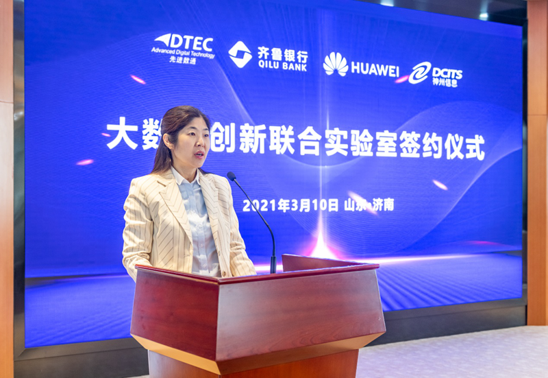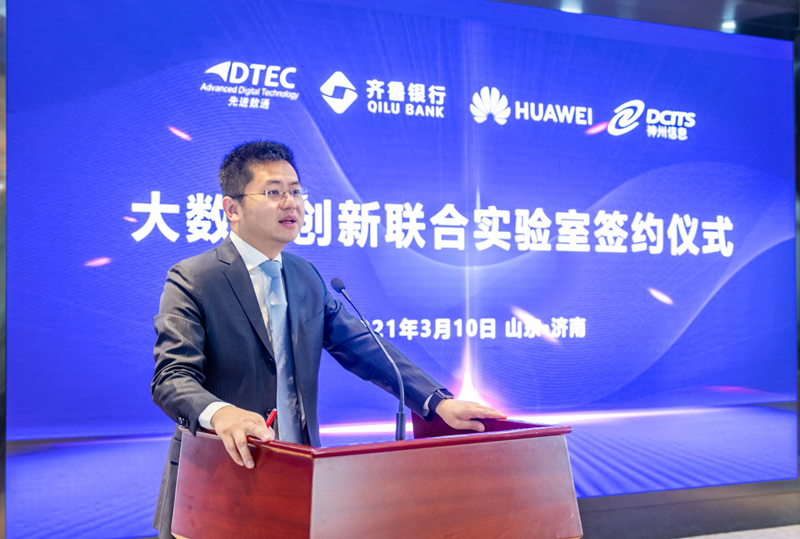 平安陆金所副总裁金麟先生在致辞中提到,平安陆金所自2000创建以来不断专注于中国金融信息化的建设,软件解决方案的90%以上的业务集中于金融行业,紧跟中国银行业数字化转型的浪潮,公司现在在金融分布式架构、金融数据中台、金融大数据应用、区块链应用解决方案均处于行业先进地位。希望与齐鲁银行、华为公司、神州信息一道让大数据创新联合实验室为齐鲁银行业务开展创造价值,成为中国商业银行数字化转型的标杆!