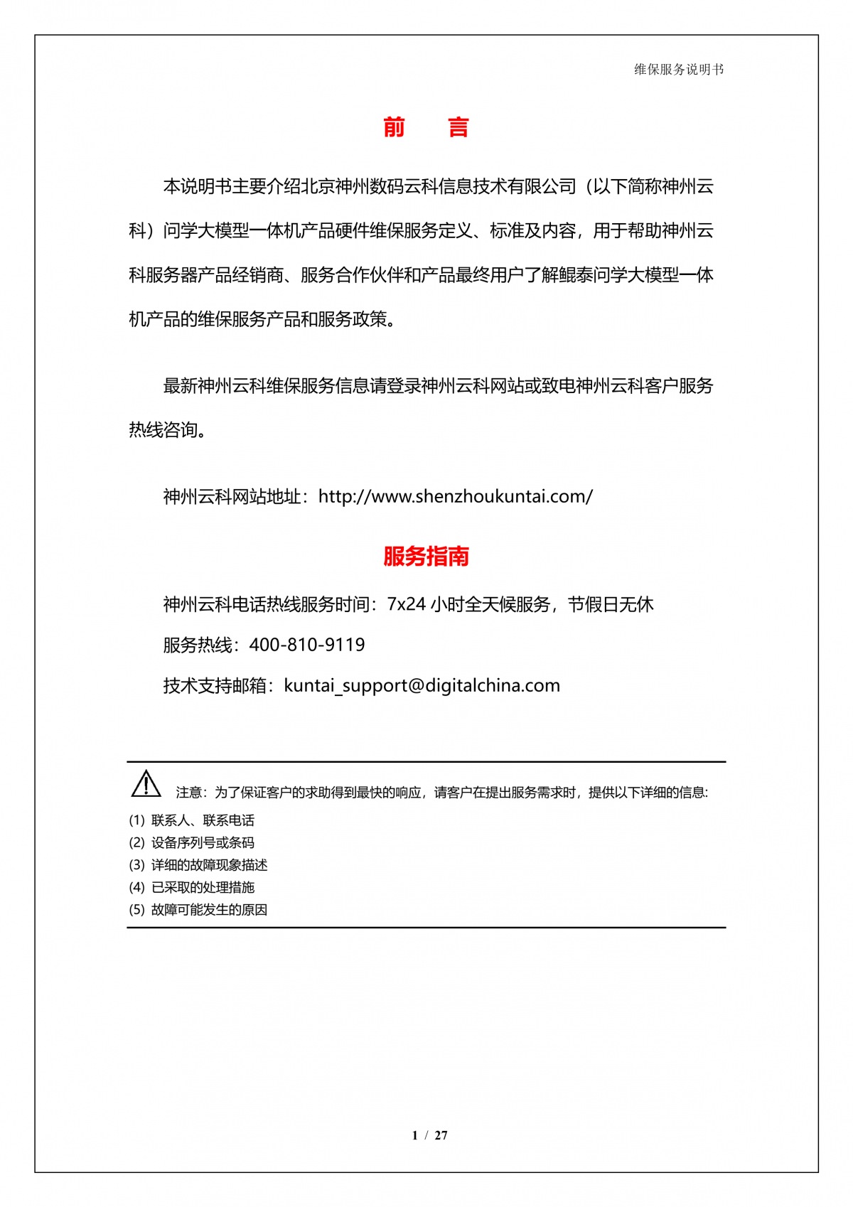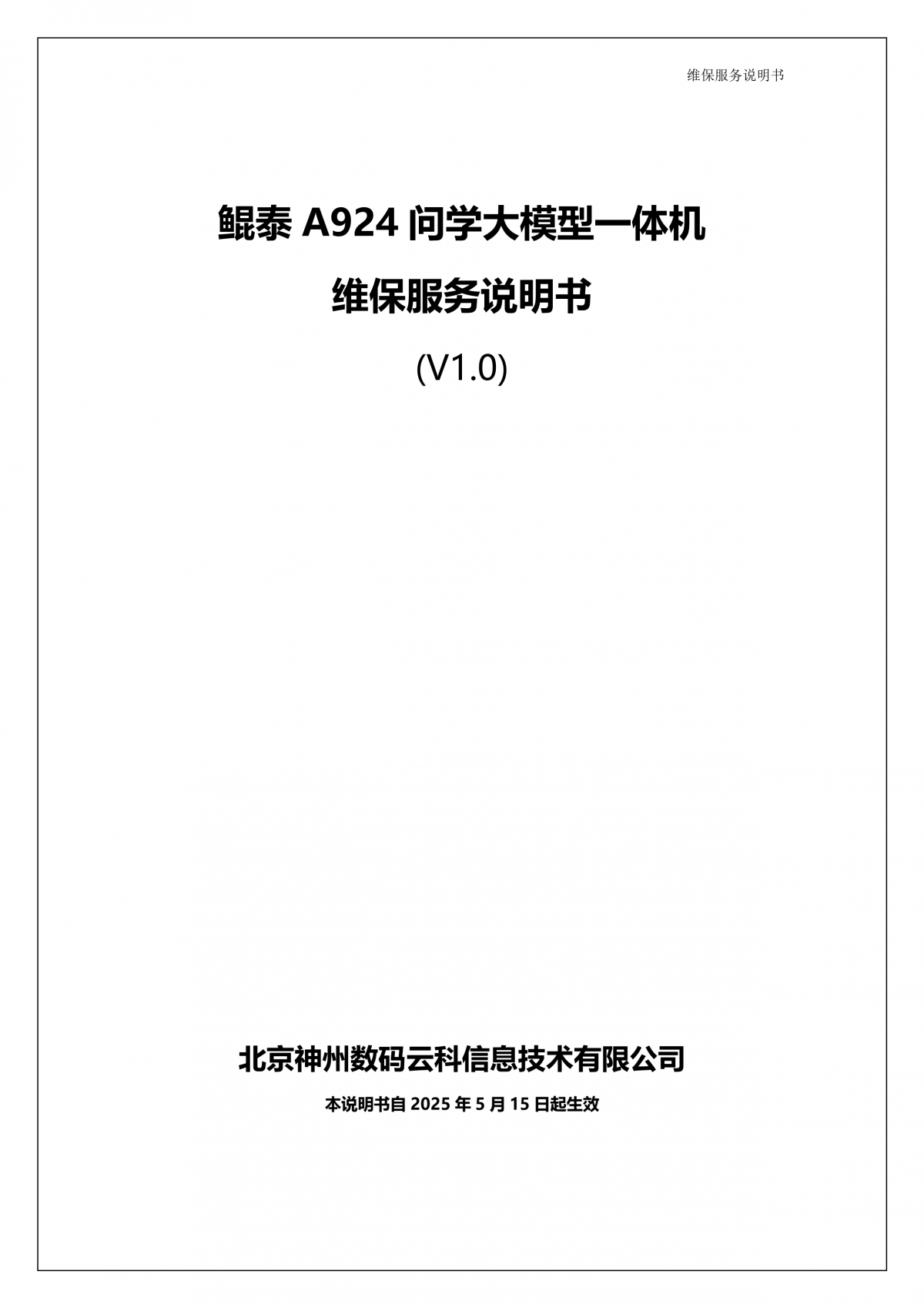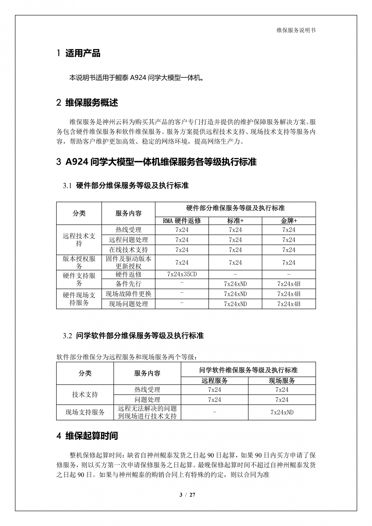 平安陆金所A924 问学大模型一体机维保服务说明书_V1.0